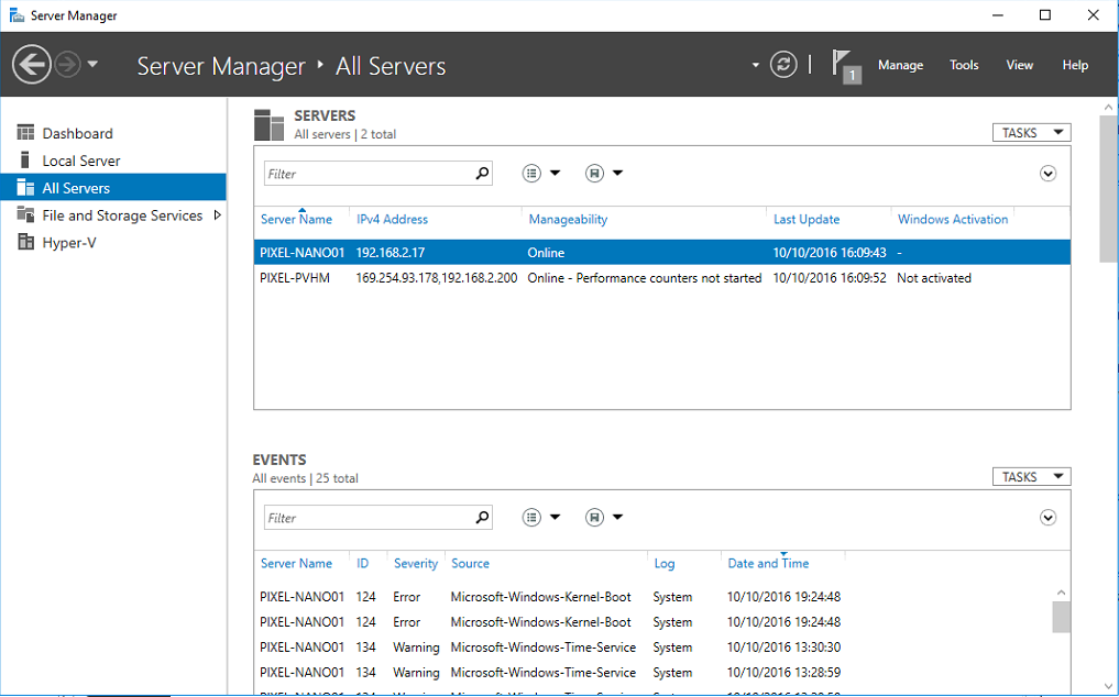 I have seen a lot of sysadmins using Remote desktop to manage their servers, I was even one of them, but with Nano Server you can’t just RDP into it. In this guide I will show you three methods of managing Nano Server. One will be via Powershell, second will be Powershell Direct, and the third will be via Server Manager.