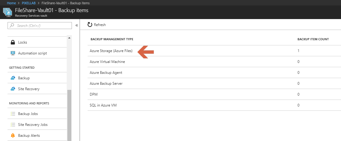 The backup will now start, depending on how many files you are backing up this could take some time. In the Backup Items blade click Refresh to see an update to the backup progress.